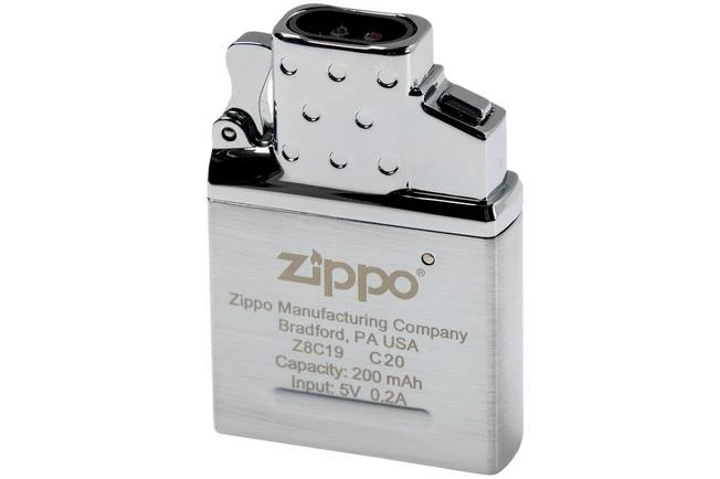 Customize your Zippo lighter with this Zippo Arc Lighter Insert. It is a lighter insert that replaces the standard Zippo insert. With it you turn your Zippo into a lighter you can charge! Two strong plasma jets cross each other. You can easily light it by pressing the soft-touch ignition twice. This insert fits on all Classic Zippo lighters (but not in the Slim or 1935 Replica lighters).